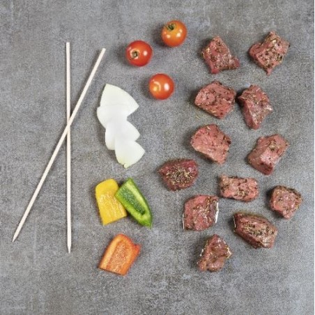 Cube de Bœuf mariné à la Provençale (Herbes de Provence), vendu avec 10 mini pic à brochette en bois.